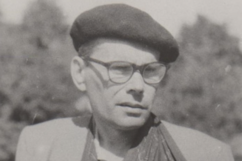 Balys Sruoga koncentracijos stovykloje. Izidorius Armonavičius, XX a. II p. Popierius; aliejiniai dažai. Biržų krašto muziejus „Sėla“
