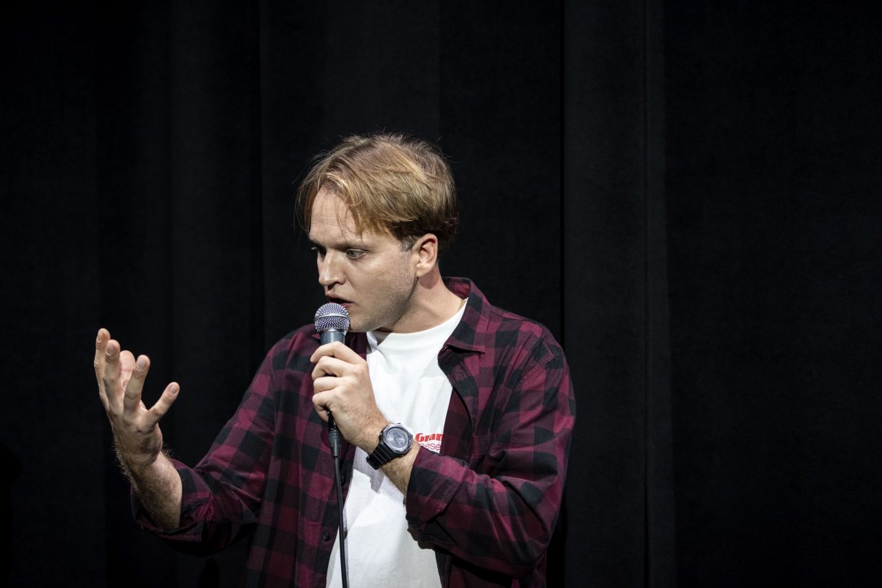 „Stand-up’as prasmei ir beprasmybei“ – komiška pjesė apie pagrindinių veikėjų (Mamos, garsios televizijos laidų vedėjos, ir Sūnaus, jaunojo stand-up žanro komiko) bandymą susikalbėti po tėvo netekties. Juodasis humoras, saviironija ir pasakojamasis humoras (stand-up) derinami su drama, supinant pasakojimą apie praradimą, apie mamos ir sūnaus santykį su visuomenės požiūriu į gedulą ir iš to kylantį poreikį prisitaikyti.