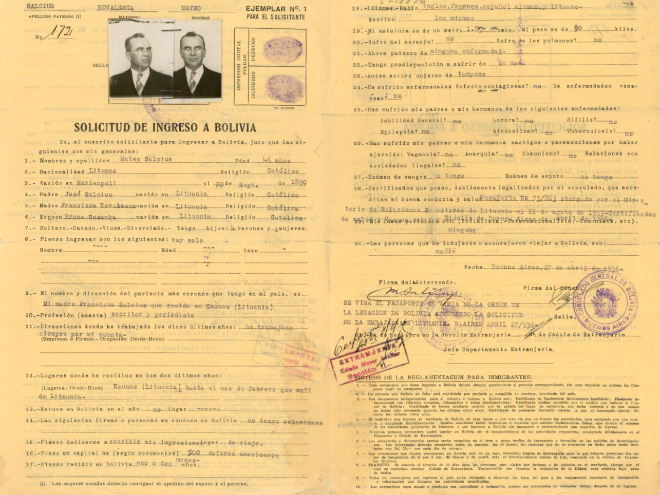 Mato Šalčiaus prašymas leisti įvažiuoti į Boliviją, 1936 m.