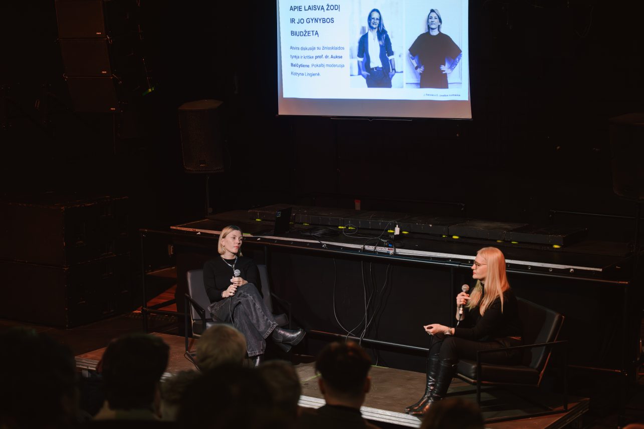 Vakarą užbaigė K. Lingienės moderuotas pokalbis „Apie laisvą žodį ir jo gynybos biudžetą“ su žiniasklaidos tyrėja, VDU profesore dr. Aukse Balčytiene. Diskusijoje pabrėžta visuomeninio transliuotojo svarba demokratijai. „Nenustumkime LRT problematikos į paraštes. Kol kas Lietuvoje žiniasklaida laisva, bet reali grėsmė išlieka. Nacionaliniam atsparumui kultūra yra itin svarbus ramstis, tačiau jos spauda šiandien veikia „butikiškai“. Turime kalbėti ne tik profesionalams, bet ir platesnei visuomenei suprantama kalba“, – teigė A. Balčytienė.