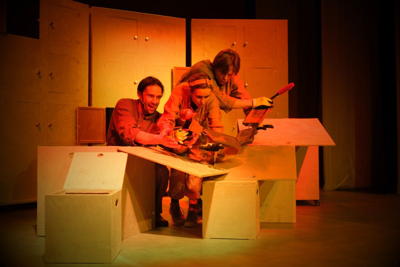 Kuriant spektaklį buvo bendradarbiaujama su Lenkijos institutu Vilniuje bei itin įdomia ir stipria kūrėjų komanda iš Lenkijos: spektaklis sukurtas pagal žymios lenkų dramaturgės Malinos Prześlugos pjesę (iš lenkų kalbos vertė Imelda Vedrickaitė–Frukacz). Režisierė – Bernarda Anna Bielenia, kompozitorius – Marcin Nagnajewicz. Spektaklio dailininkė – Julija Skuratova, choreografė – Vesta Grabštaitė. Vaidina: Augustas Gudelis, Indrė Endriukaitė, Remigijus Endriukaitis.