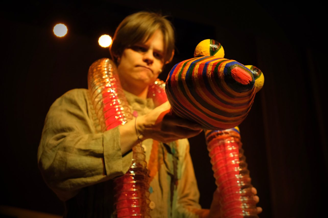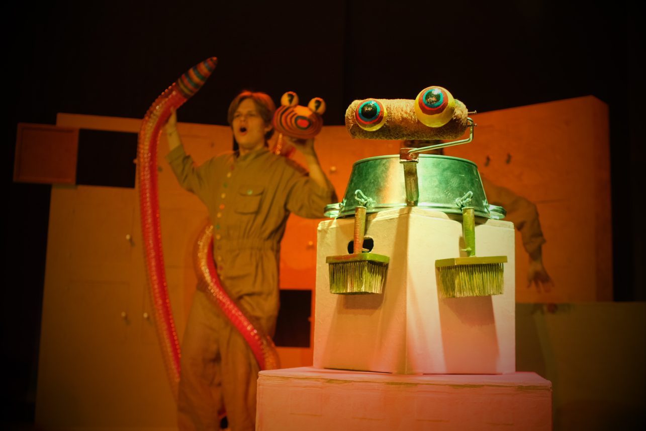Spektaklio kūrėjai vaikus įtraukia į kūrybinį procesą čia ir dabar. Interaktyviai bendraudami su mažaisiais žiūrovais, aktoriai kartu ieško atsakymų į kylančius klausimus, kuria personažus pasitelkdami objektus, muziką ir judesį. Netikėti veikėjai gimsta iš kasdienių daiktų – dėžučių, teptukų, pagaliukų, panaudotų pakuočių. Šis žaismingas požiūris į įprastus objektus ne tik stebina, bet ir lavina vaikų vaizduotę, abstraktų mąstymą bei kūrybiškumą, kviečia atrasti ir pažvelgti į mus supančius objektus naujai.