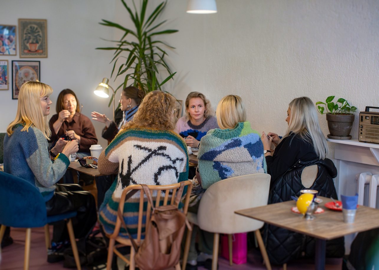 Gintarė tikina, kad šiuo metu mezgėjų susitikimai kartą per mėnesį vyksta daugelyje Lietuvos miestų – aišku, ir Kaune. Šį spalį kauniečių mezgimo entuziasčių Ingos ir Agnetos kvietimu Kauno kavinėje „Coco“ susirinko apie trisdešimt mezgėjų – tarp jų ir šio straipsnio herojė, ir mūsų fotografė Svetlana. „Buvo smagu matyti, kad daugelis jų dėvėjo pačių megztus M. K. Čiurlionio megztinius. Ten susirinko įvairiausia publika: nuo pervargusios daugiavaikės mamos iki ambicingos „Rotary“ klubo prezidentės. Visos paliekame savo socialinius ar profesinius vaidmenis, pamirštame kasdienius rūpesčius ir panyrame į siūlus – konsultuojamės, dalijamės pastebėjimais. Taip mezgasi ne tik megztiniai, bet ir draugystės“, – pasakoja Gintarė.