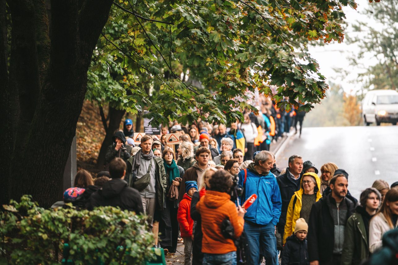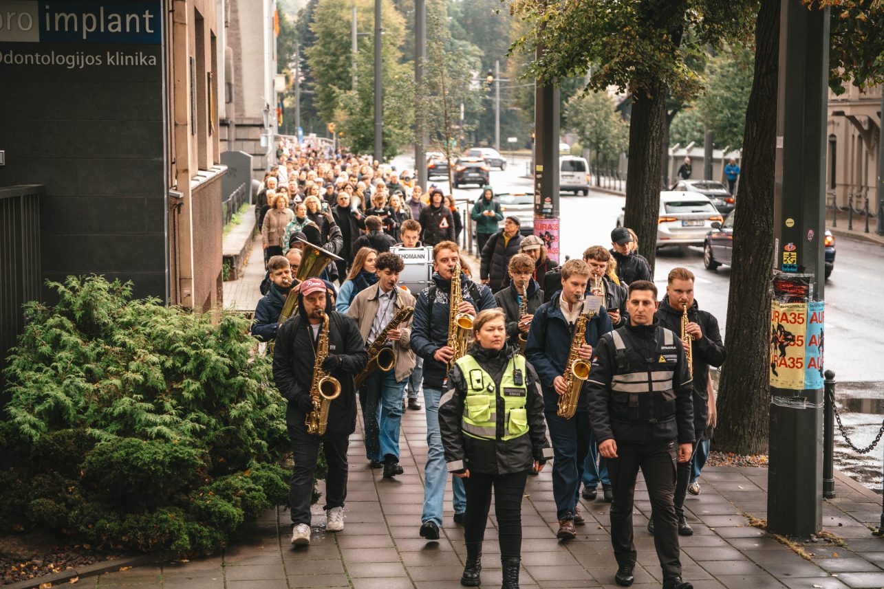 Prie Ąžuolyno bibliotekos susirinkusi minia, vedama Dainiaus Svobono ir Andriaus Žiurausko, žygiavo iki Vytauto Didžiojo karo muziejaus, iš kurio kariljono bokšto 14 val. sklido Čiurlionio „Jūra“.