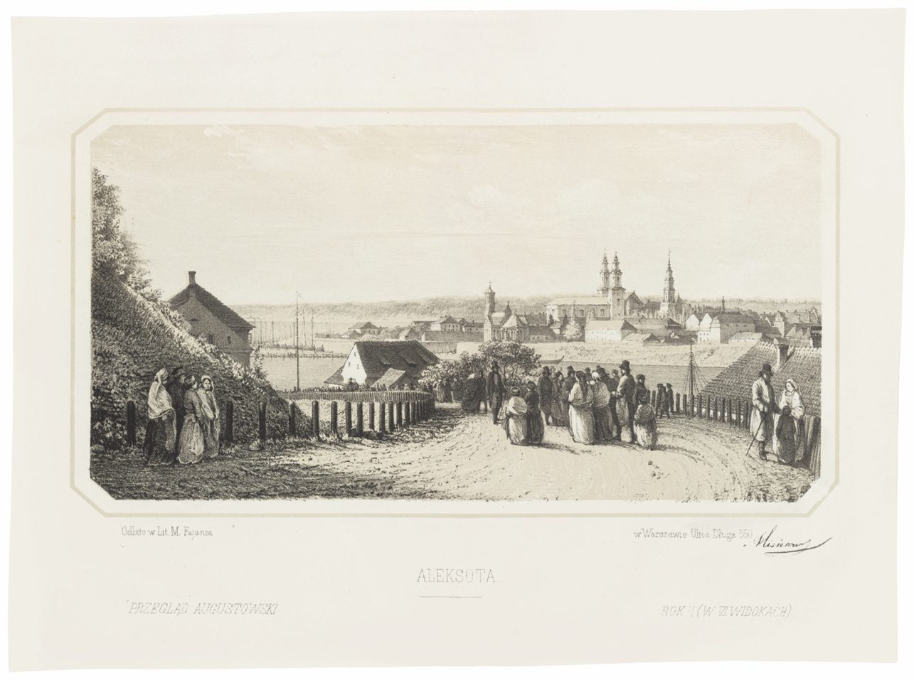 Maksimiljono Fajanso litografija pagal Aloyzo Miserovičiaus piešinį Kauno priemiesčiai. Aleksotas, 1856 m., popierius, litografija. Lietuvos meno pažinimo centras TARTLE