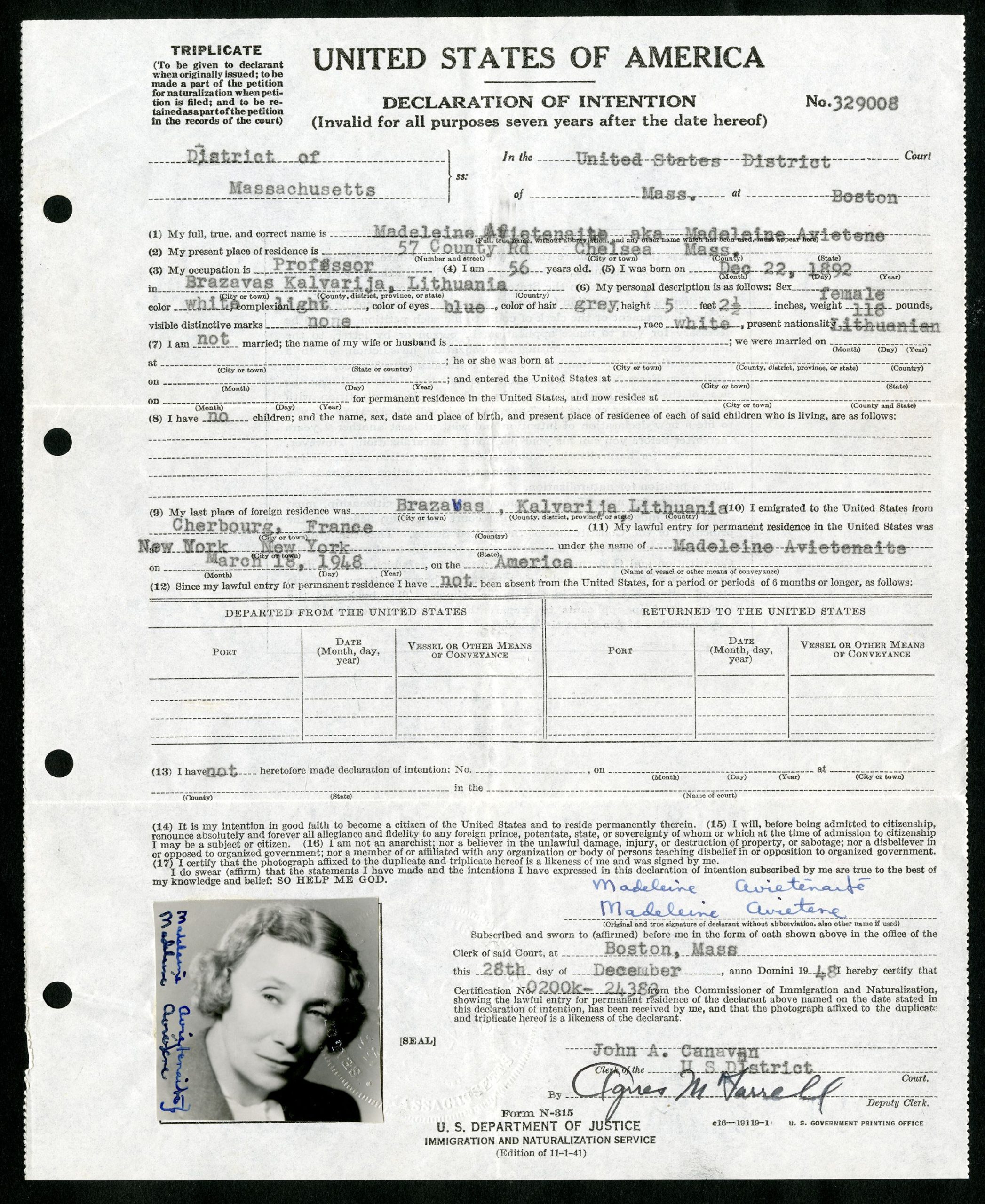 Iš Ketinimų deklaracijos, pateiktos JAV Teisės skyriui deklaruojant savo atvykimą į šalį, sužinome, kad į Ameriką ji atvyko 1948 m. kovo 18 d. iš Prancūzijos. Apie tai, kaip jai sekėsi grįžti ir įsitvirtinti Amerikoje, nemažai sužinome iš jos laiškų buvusiam JAV pasiuntiniui Lietuvoje Owenui Noremui juodraščių ir užpildytų įsidarbinimo formų. Nors dauguma jos pažįstamų buvo įsitikinę, kad, turėdama tokią patirtį ir kompetencijas, ji lengvai ras sau vietą Amerikoje, tačiau viskas buvo daug sudėtingiau. Laiškuose O. Noremui M. Avietėnaitė rašė, jog dėl to, kad negrįžo į JAV iki 1946 m. spalio, ji buvo netekusi Amerikos pilietybės, o įsidarbinti be jos buvo labai sunku. Ieškodama mokytojos ar bibliotekininkės darbo, Magdalena užsiregistravo penkiose agentūrose, nors ir labai trūko mokytojų, bet visur atsirado papildomų kliūčių; mokyklos nenorėjo samdyti moterų, vyresnių nei 40 metų. Dauguma mokyklų net neatsakė į prašymus, kitos atrašė, kad kvalifikacija puiki, bet jau priėmė kitą žmogų. Ne vienas jos aplinkos žmogus ragino ją pabandyti įsidarbinti Vašingtono Kongreso bibliotekoje, tačiau net ir su asmeninėmis rekomendacijomis įtakingiems asmenims šios darbo vietos negavo. Ji jautriai išgyveno, kad darbo negavo ne dėl kvalifikacijos trūkumo, bet dėl antraeilių dalykų. „Negaliu įsidarbinti. Mano mokiniai gali, bet aš negaliu“, – skundėsi ji viename iš laiškų.