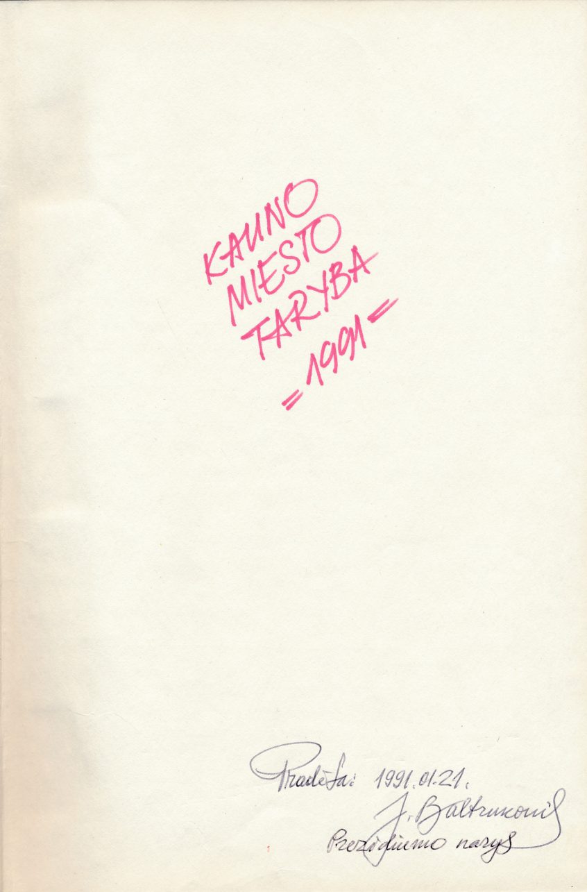 Peržiūrėdami Kauno miesto muziejuje saugomų žurnalų įrašus ir papildydami bendrą vaizdą tuometės spaudos bei kitais šaltiniais, galime įsivaizduoti, kokia nelengva misija teko Kauno savivaldybei tomis įtemptomis savaitėmis, kai kauniečių patriotizmo dėka Kaunas vėl buvo tapęs „Lietuvos nepriklausomybės ramsčiu, o Sitkūnai – Lietuvos laisvės balsu“ (Arūnas Dambrauskas, Laisvasis Kaunas, nr. 1, 1991 m. sausio 14 d., p. 3).