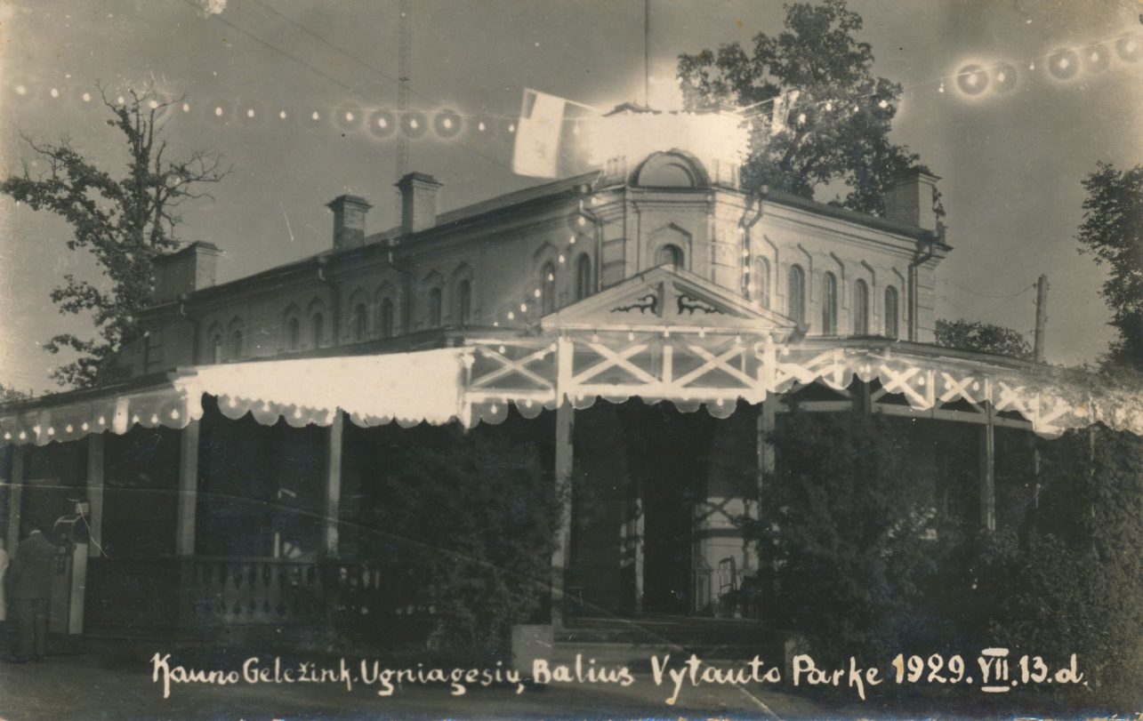 Ugniagesių šventei iliuminuotas Vytauto parko paviljonas. 1929 m. liepos 13 d. Kauno miesto muziejaus fondai