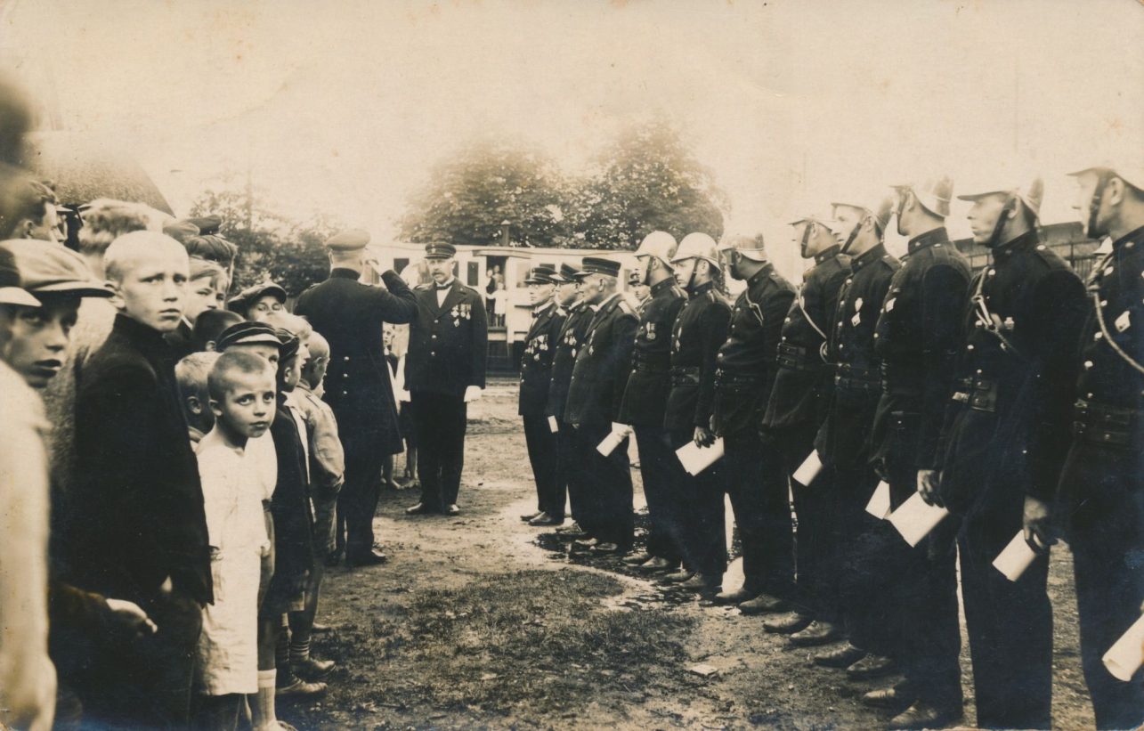 Apdovanojimui išrikiuoti ugniagesiai. Kauno miesto muziejaus fondai