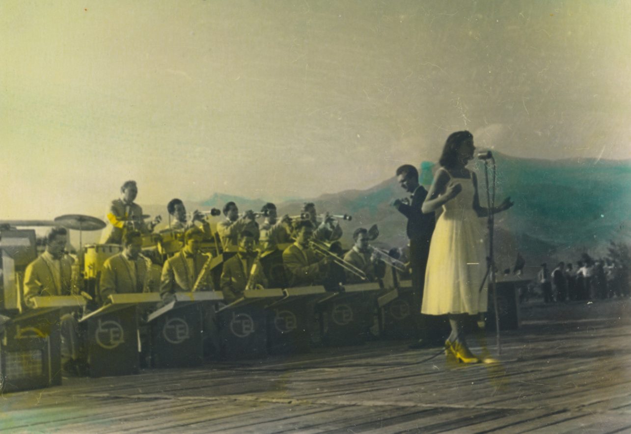 Lietuvos estradinis orkestras gastrolių metu. Fotografas nežinomas. Apie 1960 m. Kauno miesto muziejaus fondai