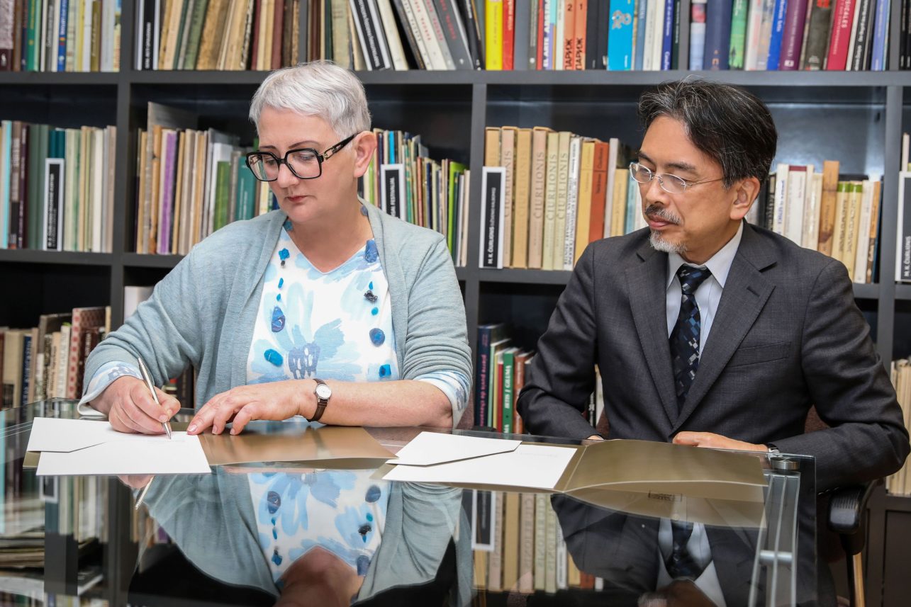 M. Tanaka ir D. Kamarauskienė pasirašo ketinimų protokolą. G. Keturakytės nuotr.