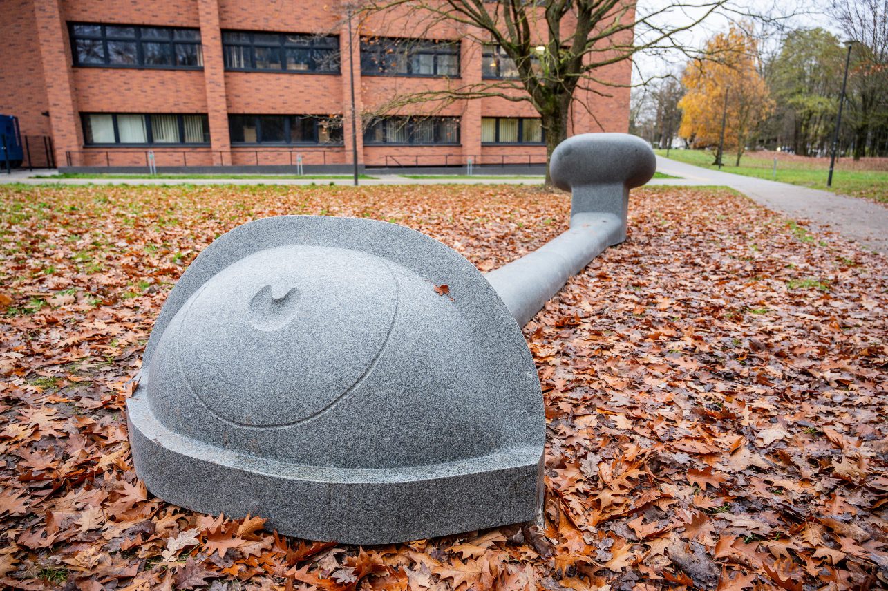 Kaunas tęsia viešųjų erdvių puošimą per programą „Kauno akcentai“ – ties Ąžuolyno bibliotekos pastatu, Mažajame ąžuolyne, iškilo nauja granitinė skulptūra „Matyk-klausyk“. Kūrinys kvies stebinčiuosius atsakingai vertinti informacijos patikimumą, kritiškai mąstyti. Kūrinio autorius – kaunietis skulptorius Algimantas Šlapikas, kurio darbai jau puošia kitas miesto viešąsias erdves.