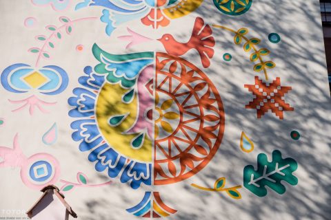Ant muziejaus fasado – miesto, kvartalo ir pastato istoriją primenantys piešiniai
