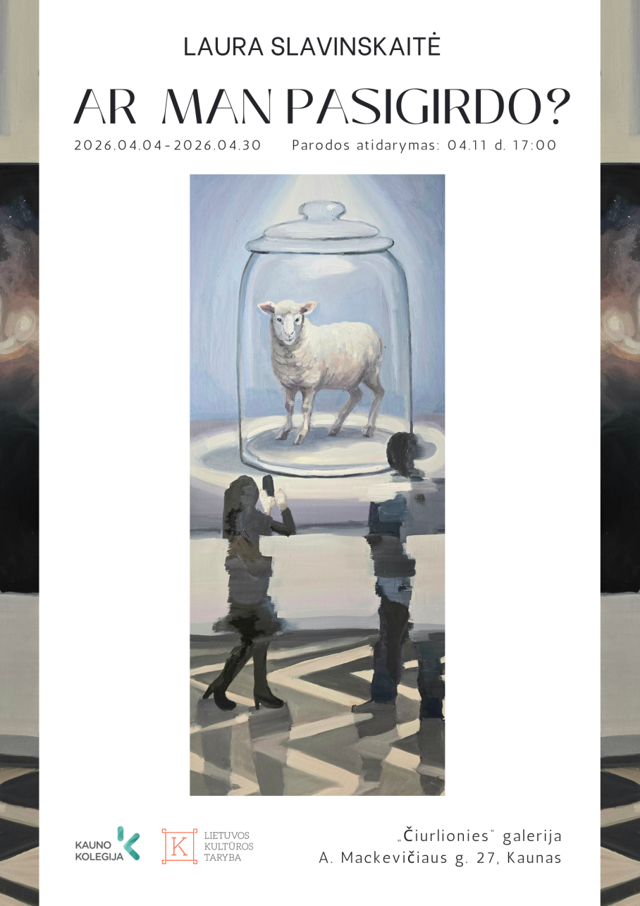 Maloniai kviečiame, balandžio 11 d. (šeštadienį), 17:00 val. į Kauno kolegijos Menų ir ugdymo fakulteto Menų akademijos lektorės, tapytojos Lauros Slavinskaitės personalinės parodos „Ar man pasigirdo?“ atidarymo renginį „Čiurlionies“ galerijoje (A. Mackevičiaus g. 27, Kaunas).