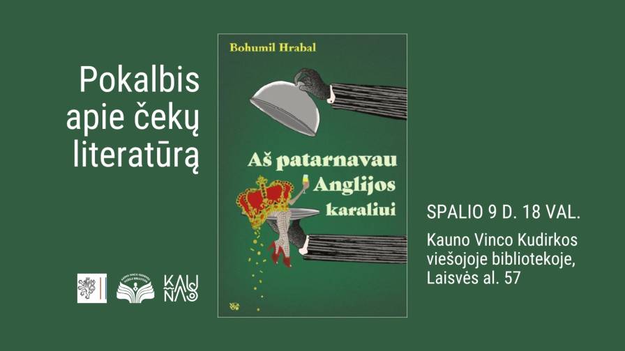 Biblioteka kartu su Čekijos Respublikos ambasada ir Kauno miesto savivaldybe kviečia į pokalbį apie čekų literatūrą. Čekijos Respublikos ambasados Pirmoji sekretorė Marie Stojanovova, kuri pristatys ne tik gerai žinomą Jaroslavo Hašeko Šaunųjį kareivį Šveiką ar Milano Kunderos kūrybą, bet ir pastaraisiais metais pasirodžiusius naujausius čekų literatūros vertimus. Vertėja Rasa Sičiūninenė, dar studijų laikais susidomėjusi Bohumilo Hrabalo kūryba, papasakos apie naujai išverstą jo knygą „Aš patarnavau Anglijos karaliui“ ir atskiro romano vertą paties autoriaus B. Hrabalo gyvenimą.