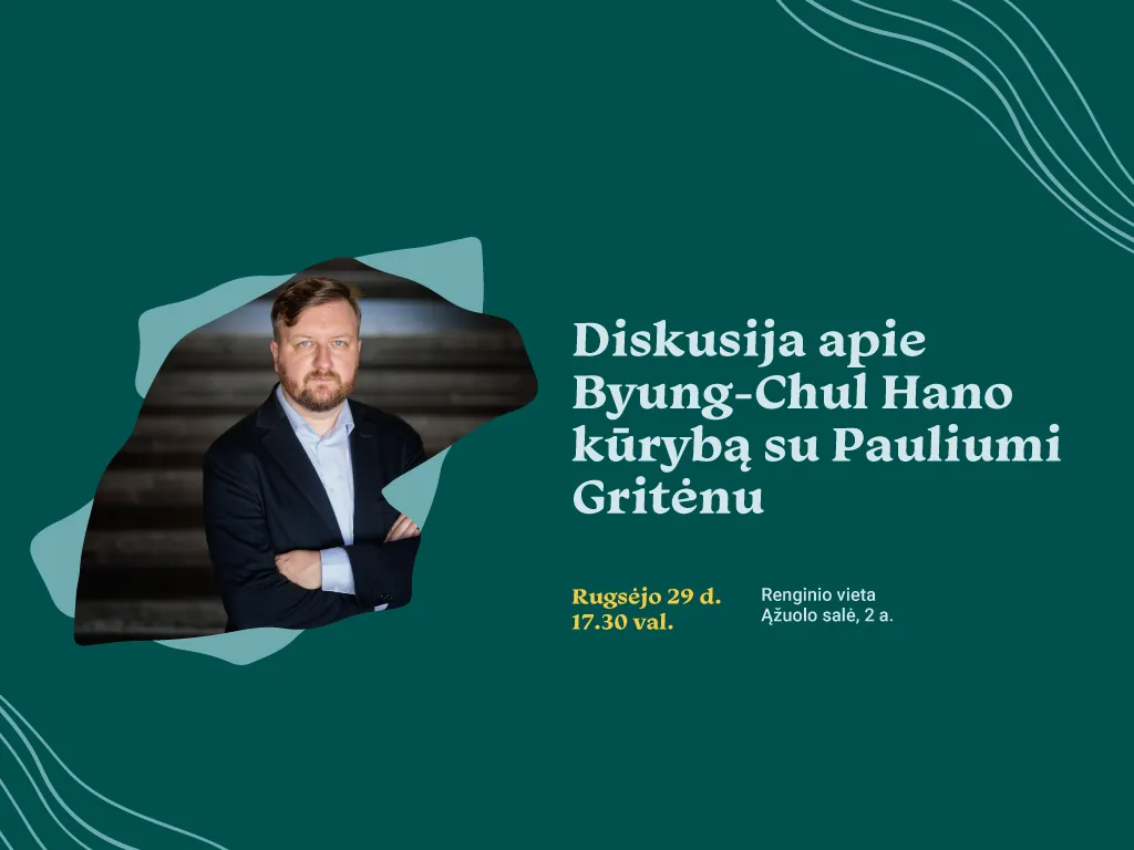 🗣️ Diskusija apie Byung-Chul Hano kūrybą su Pauliumi Gritėnu, 17:30
