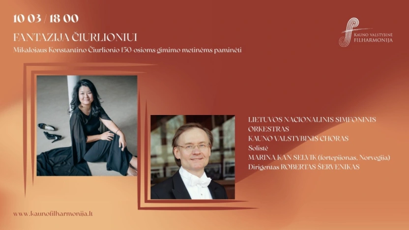 Minėdama Mikalojaus Konstantino Čiurlionio 150-ąsias gimimo metines Kauno filharmonija kviečia į dar vieną šiai progai dedikuotą koncertą, kuriame Lietuvos nacionalinis simfoninis orkestras, Kauno valstybinis choras, norvegų pianistė Marina Kan Selvik ir dirigentas Robertas Šervenikas greta M. K. Čiurlionio uvertiūros „Kęstutis“ ir simfoninės poemos „Miške“ atliks Ludwigo van Beethoveno ir Edvardo Griego kūrinius. Klausytojų laukia išskirtinė ir turininga programa.