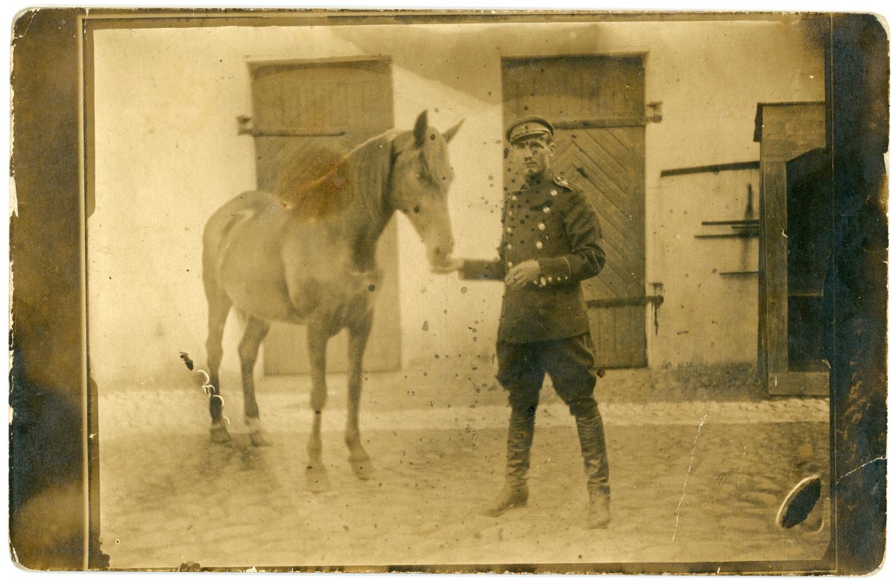 Žirgas Lima ir ugniagesys puskarininkis V. Čikata. Fotografas nežinomas, 1927 m. / Kauno miesto muziejus