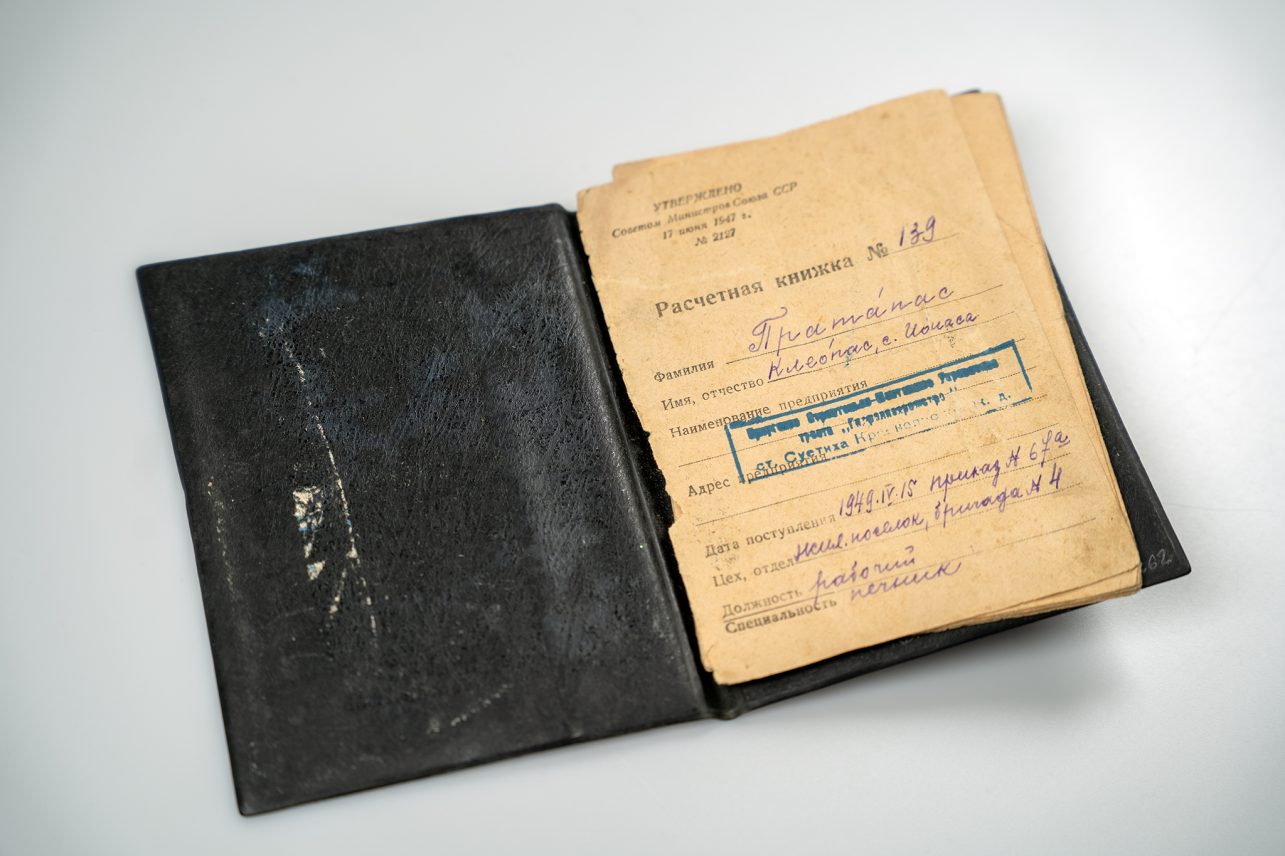 Muziejui perduota darbo knygelė. Kauno IX forto muziejaus rinkiniai (KDFM 37156). Karolinos Vilkelienės nuotr.