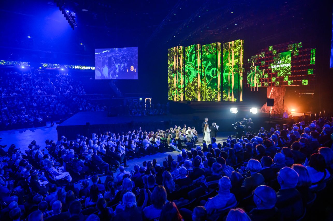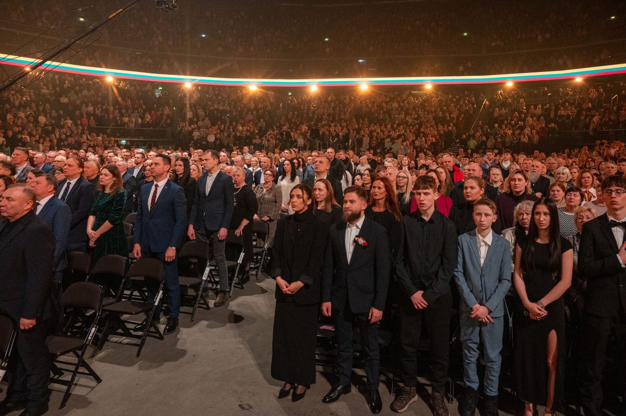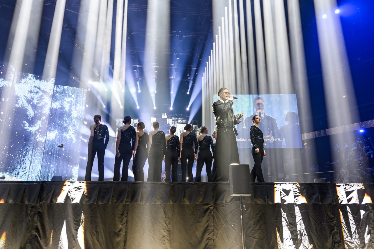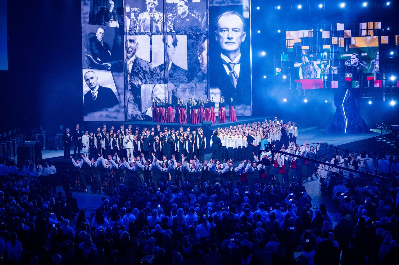 Renginio metu žiūrovai liko nustebinti Lietuvos istoriją pasakojančiais siužetais, kurtais pasitelkiant dirbtinį intelektą. Didžiuliame Žalgirio arenos ekrane iš nuotraukų atgimė Jonas Basanavičius, Antanas Smetona, Jonas Vileišis, Petras Klimas, signatarus istorinės vertės kadre įamžinusi fotografė Aleksandra Jurašaitytė ir toji lemtinga, šaltos žiemos vasario 16-oji diena, kuomet 1918-ųjų metų Lietuvos Tarybos nariai susirinko savo parašus padėti ant Lietuvos nepriklausomybę atkūrusio nutarimo.