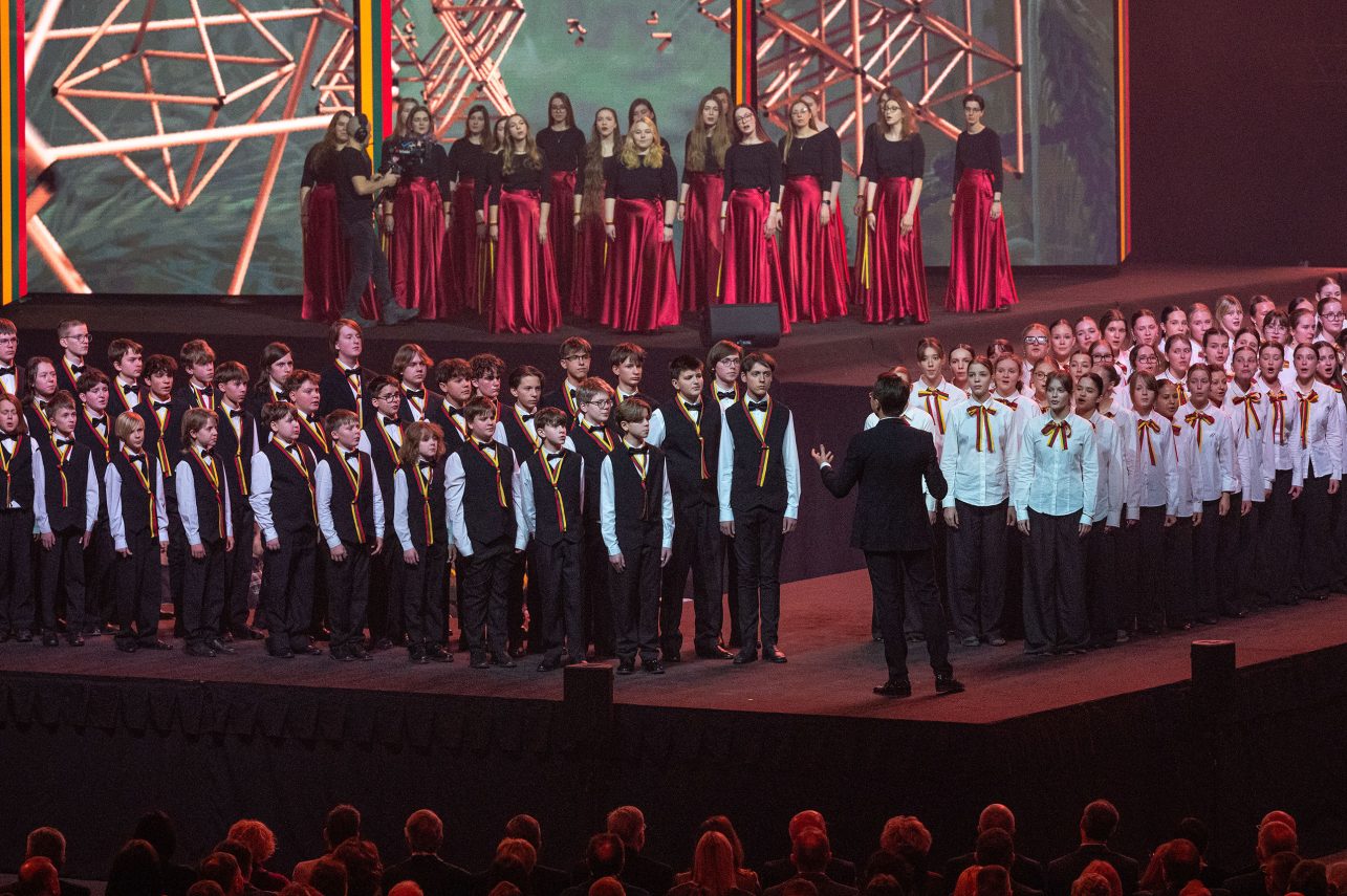 Šventinį koncertą vedė trijų skirtingų kartų atstovai: aktoriai Andrius Bialobžeskis ir Vytautas Rumšas jaunesnysis bei Kauno dailės gimnazijos mokinė Lėja Mačiokaitė, o scenoje su chorais ir šokių ansambliais pasirodė žinomi šalies atlikėjai: Merūnas Vitulskis, Linas Adomaitis, Martynas Kavaliauskas, grupė „Žemaitukai“, Paulina Paukštaitytė, Vidas Bareikis ir daugelis kitų.
