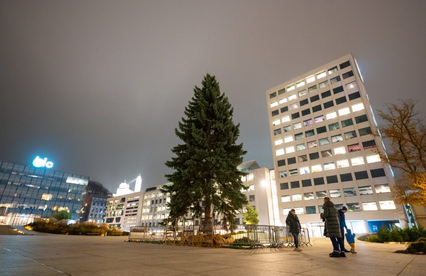 Didžioji Kauno Kalėdų eglė atkeliavo į Vienybės aikštę