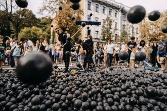 Festivalis „ConTempo“ prasidėjo Kauno gatves užliejusia kamuoliukų upe