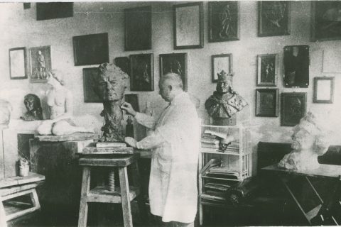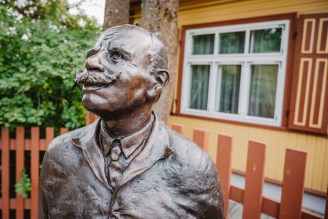 Šalia skulptoriaus Juozo Zikaro namų – jų šeimininko skulptūra
