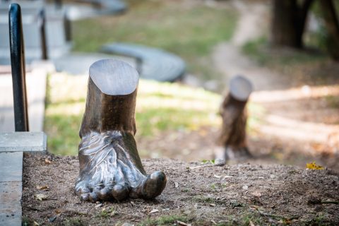 Prie Kauko laiptų – bronzinės mitinės būtybės pėdos