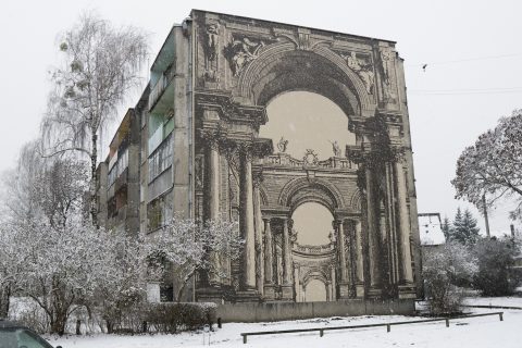 Daugiabutis Vilijampolėje išgarsėjo nauju piešiniu „Skliautas“